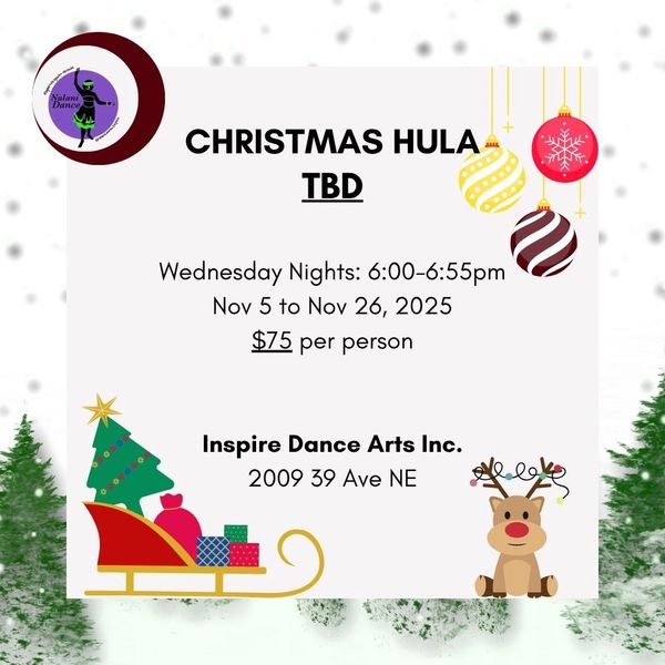 Beginner Hula Classes on Wednesday Nights. This will be a Christmas themed hula, routine still TBD.